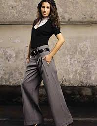 Eu comecei com aquelas calças saruel. São ótimas e com um peep toe fica lindo. Mas estou de olho naquelas calças Pantalona. Confesso que não sou nada ligada a moda, e nem sei as novidades do ano, tanto que só descobri o nome delas agora. São aquelas calças largas, longas, que dão a impressão que temos 2 metros só de perna. Super chique.
